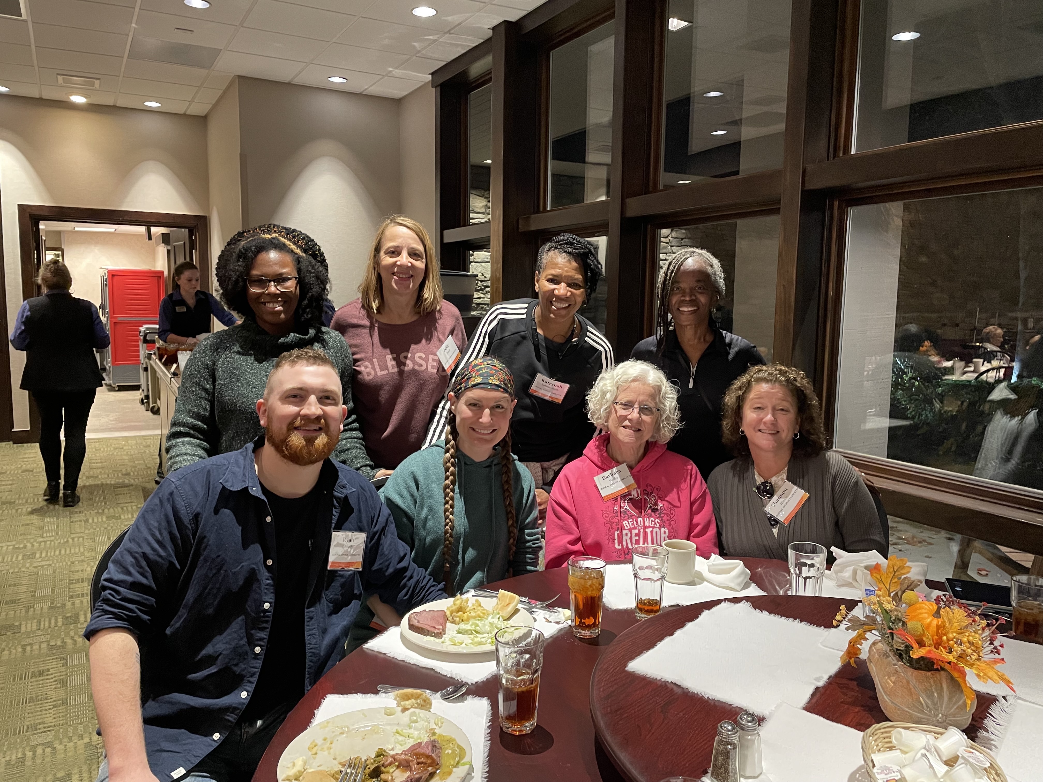 Even though I could not see the peoples name tags. Well I could see them but not read them, everyone was so welcoming and so so sweet. Two deaf ladies signed up to come and they were helpful and so much fun. One interpreter ( Lauren ) from church who has become a sweet friend, insisted on helping me. She sat beside me to make sure I understood. My heart swells with gratitude. My roommate Barbara who is also deaf, was such a joy. She helped me see where things were in the dining room, telling me the foods at the buffet. I really enjoyed getting to know her.