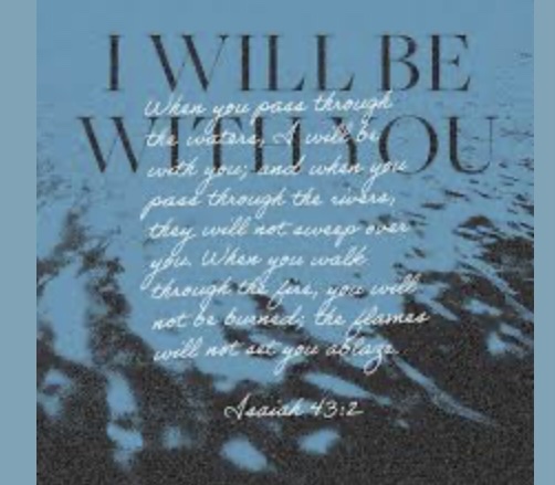 I love Isaiah 43:1-2: “But now, thus says the Lord, who created you, O Jacob, And He who formed you, O Israel: “Fear not, for I have redeemed you; I have called you by your name; You are Mine. When you pass through the waters, I will be with you; And through the rivers, they shall not overflow you. When you walk through the fire, you shall not be burned, Nor shall the flame scorch you.” (NKJV)