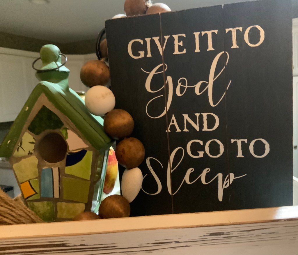 Im going to keep that picture in my pillow. When I feel it at night, I will continue to lift up a prayer for our son. As parents we can’t always be there physically but our Abba Father sure can. I found the perfect little sign a while back. It says “Give it to God and go to sleep”. It’s the perfect reminder for me.