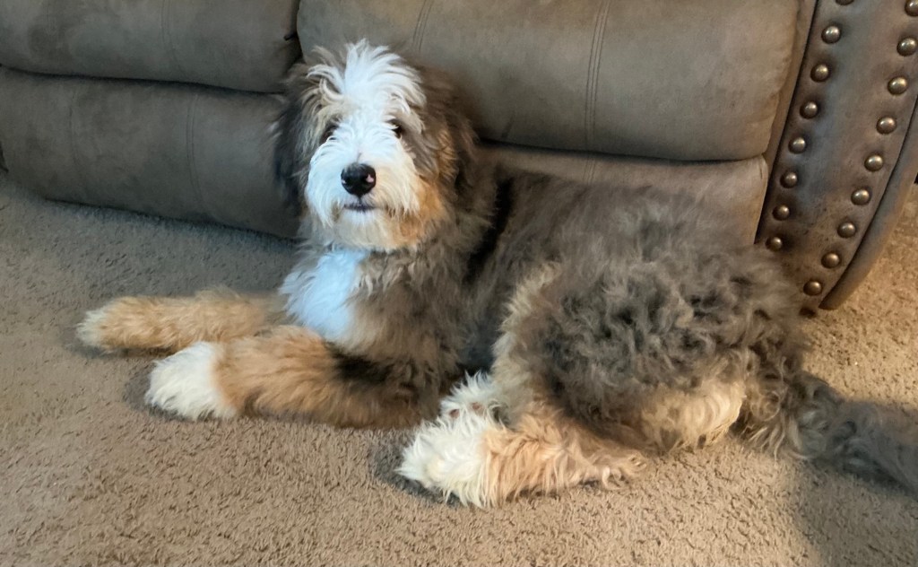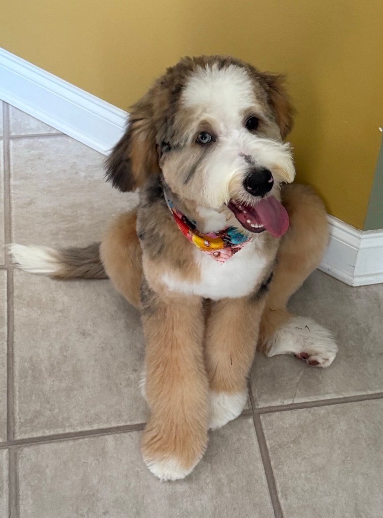 Our grand-puppy Moose is now 5 months old and finally got his hair cut today. He went through a rough spell when he got into a parasite outside that took several medicines to clear up. He is such a dog; eating dirt, bugs, bark and anything he can find outside. He is now 39 pounds and a healthy loving playful bundle of joy. He was looking a bit “shaggy” and was a bit clumsy, probably due to his hair always in his eyes. He is a hoot to watch. Since he has all his shots he could finally get his hair cut. Little “Shaggy” got a new “Do” and he is looking quite handsome. The groomers said he did really well, which was a relief. Our 14 year old rescue Joy can’t stand things like that. Moose seems to feel so much better. It’s been so incredibly HOT here lately and his hair was SO thick. With the trim, his colors show up very well now. He is a beautiful dog. God sure is incredibly artistic.
